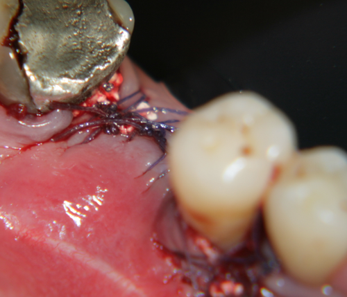 Необходимо е оголената коренова повърхност да се покрие с гранулите на